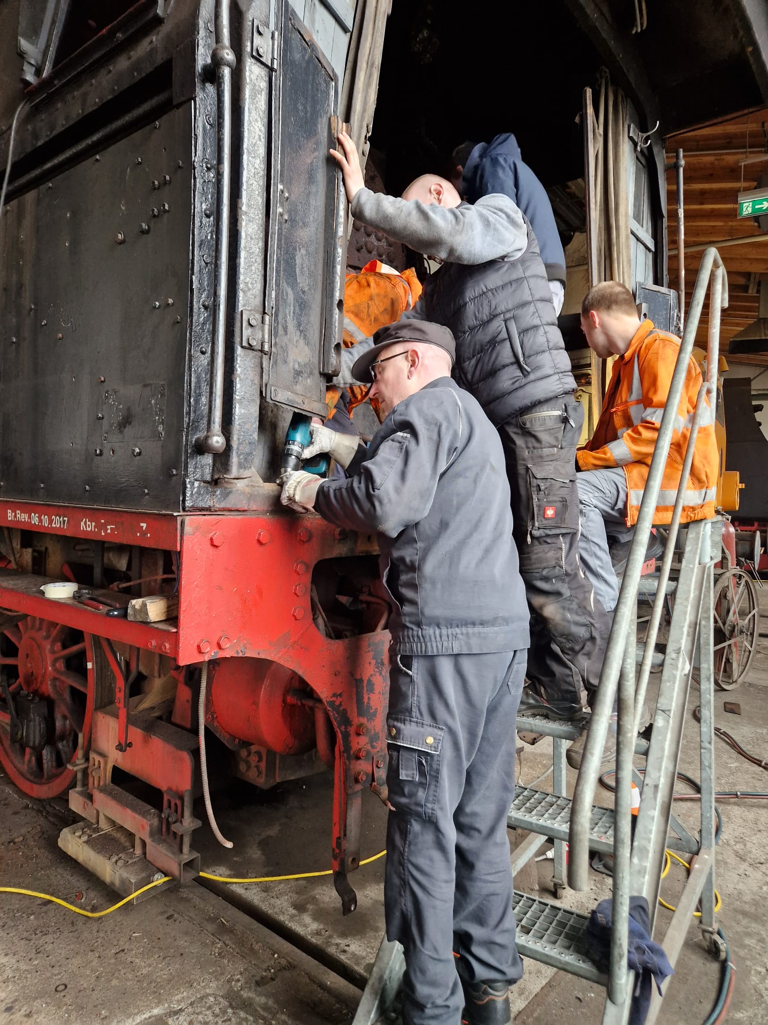 Before the season gets underway, we have made good progress on our steam locomotive 50 3682, which is currently being dismantled so that it can be fitted with a new boiler. Before that, however, the driver’s cab must be removed, which is currently the main task. You wouldn’t believe how many bolts and connections need to be loosened before the driver’s cab can be separated from the frame and the existing boiler. Quite a few of the bolts had seized up and could no longer be loosened. So the cutting torch was in constant use to cut them through. The attached photos show our colleagues at work.