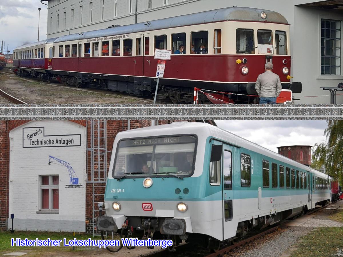 Zu unseren Herbstdampftagen am 10.10.2020 besuchten die beiden Verbrennungstriebwagen VT 628 201 der IKN Gruppe (Interessengemeinschaft Kulturlokschuppen Neumünster) und der VT 95 0800301-1 der Firma CLR (Cargo Rail Logistik in Zusammenarbeit mit den Magdeburger Eisenbahnfreunden) den Historischen Lokschuppen Wittenberge.