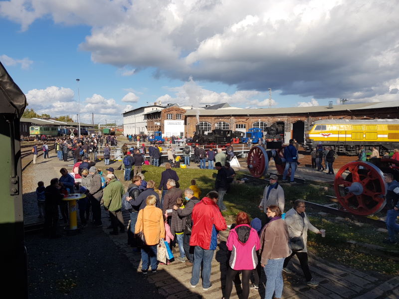 Bereits am Samstag, den 12.9., setzten wir unseren kurzen Museumszug bestehend aus Lok 0604 der OHE und einem zweiachsigen Personenwagen als Pendel zum Wittenberger Bahnhof ein.