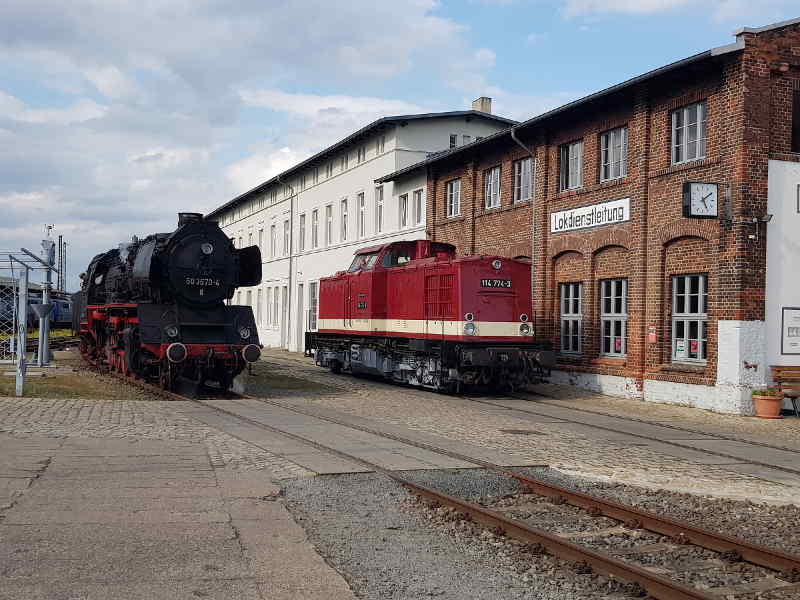 On the Friday before the event, our operable exhibits were rigged. They were loaded with coal, the water tanks were filled and they were cleaned. Steam locomotive 50 3570 was also decorated because it is celebrating its 80th birthday these days.