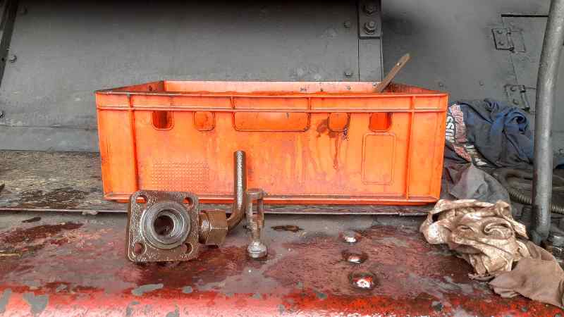 Zunächst wurden die Zylinderhähne der Dampflok 50 3570 ausgebaut und gereinigt. Sie bestehen aus runden Ventilsitzen, in denen kleine Ventilkegel sitzen, die über eine Welle vom Führerstand aus geöffnet werden können. Die Lokführer öffnen sie, wenn die Antriebszylinder der Maschine nach längerem Stillstand kalt sind und dann Dampf eingespeist wird. Der kondensiert dann nämlich zum Teil an den kalten Laufbuchsen der Zylinder und schlägt sich daran nieder. Um das Wasser kontrolliert abzulassen, werden eben diese Ventile geöffnet und das Wasser kann auslaufen bzw. wird durch den nachströmenden Dampf und die Kolbenbewegung hinausgedrückt.
