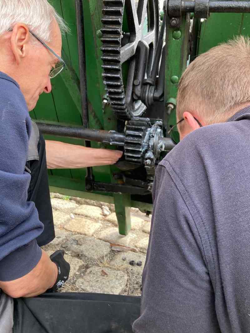 Danach konnte eine kleine Funktionsprobe der Lok absolviert werden. Und tatsächlich, sie bewegte sich aus eigener Kraft, was die Eigentümer und das Werkstattpersonal sehr bewegte. Nachfolgend finden Sie einen Link auf ein Video, das die ersten Meter der Lok zeigt. Viel Spaß beim Ansehen