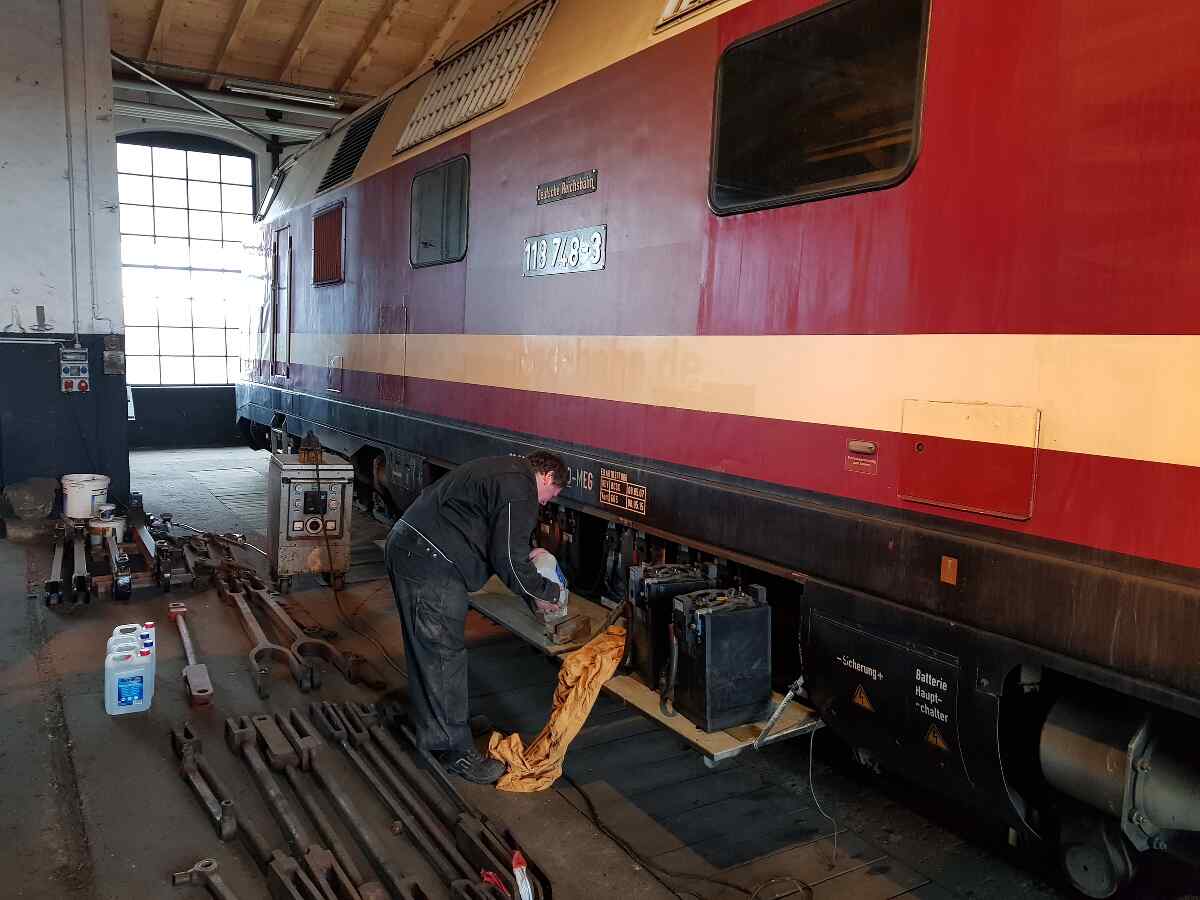 Die Aufarbeitung weiterer Diesellokomotiven wurde begonnen. Dazu zählt zunächst unsere Diesellok 118 748. Diese Maschine wurde 1968 beim Lokomotivbau Karl Marx in Babelsberg gebaut und war bis Mai 2015 im Einsatz, zuletzt vor Güterzügen. Sie verfügt über zwei Motoren mit je 1.000 PS und kann bis zu 120 km/h schnell fahren.