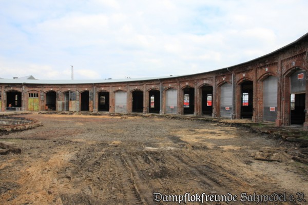 Mit dem dort gewonnenen Material wurde die Grube der Drehscheibe im Bereich des ehemaligen Lokschuppens 1 aufgefüllt. Es ist geplant, den Umfang dieser Grube zukünftig durch Pflastersteine noch sichtbar erhalten. Ein Gleis wird über die ehemalige Grube geführt.
