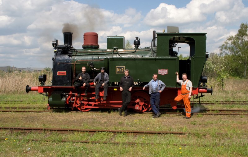 ... absolvierte unsere Dampflok "Emma" erstmalig Fahrten aus eigener Kraft auf dem Gelände des Bahnbetriebswerkes Salzwedel. Sehr zu unserer Freude ist die Restaurierung der Maschine, die 1925 im Hause Hanomag gebaut wurde, nach 42-jähriger Abstellzeit wieder in Betrieb genommen werden. Die Lok stammt von der ehemaligen Zuckerfabrik in Rethen und war dort als Nr. 2 bezeichnet. Sie wurde dort bis 1968 eingesetzt und dann privat erworben. Sie stand dann halbwegs wettergeschützt auf dem Gelände des Eigentümers in der Nähe von Neumünster abgestellt, wurde dort von dem jetzigen Eigentümer, einem bekannten Gleisbauunternehmer Hermann Wiebe erworben und einer gründlichen 18-monatigen Restaurierung unterzogen, die die vollständige Aufarbeitung des Fahrwerks, des Kessels, des Wasserkasten und der Kohlekästen umfasste. Auch wurden neue Strahlpumpen aufgebaut. Der interessierten Öffentlichkeit wird die Lok beim kommenden Tag der offenen Tür am 26./27.6.2010 vorgestellt.