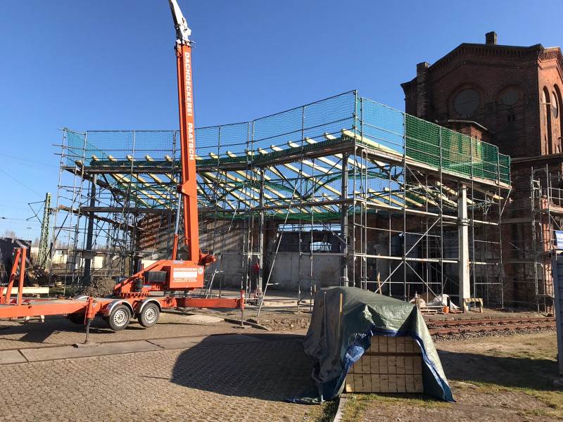 Vereinschef Burkhard Bohn hatte im September beim Tag des offenen Denkmals angekündigt, man wolle den Lokschuppen I im ehemaligen Bw zumindest teilweise wieder aufbauen. Im Gespräch mit dem „Prignitzer“ hatte Kathke präzisiert – und unterstrich das diese Woche noch einmal – , dass es nicht um den gesamten Lokschuppen und auch nicht um einen originalgetreuen Wiederaufbau gehe. Das funktioniere schon deshalb nicht, weil die neuen Gleise in Richtung Magdeburg in dem Bereich verlegt seien.